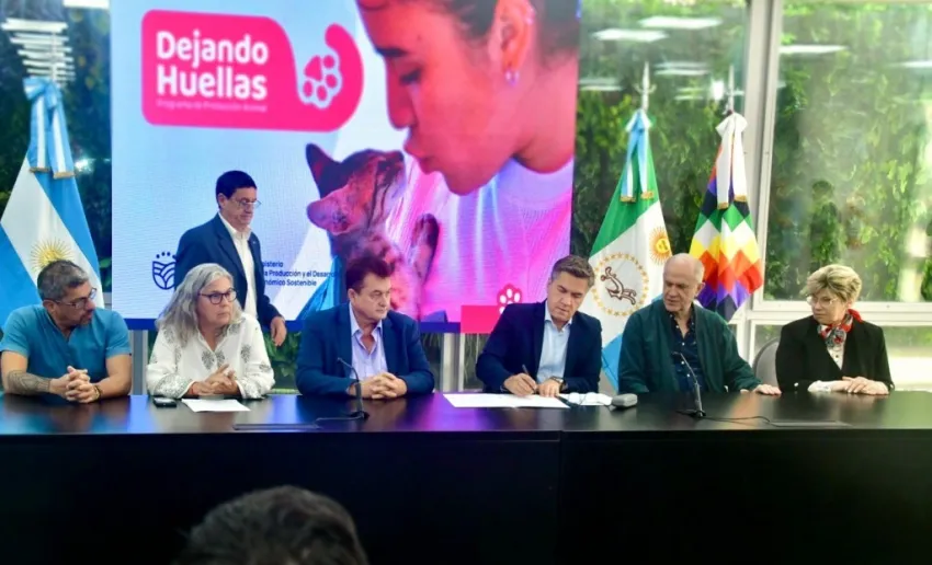 El gobernador de la provincia Leandro Zdero, junto al ministro de la Producción y el Desarrollo Económico Sostenible, Oscar Dudik, encabezó en Casa de Gobierno el lanzamiento del Programa de Protección de Animales Domésticos "Dejando Huellas". Se trata de una iniciativa del Gobierno provincial que busca mejorar la salud animal y ambiental en poblaciones vulnerables, promoviendo la tenencia responsable y la prevención de enfermedades. "El objetivo es mejorar la salud no solo de los animales sino de toda la población", remarcó el gobernador.