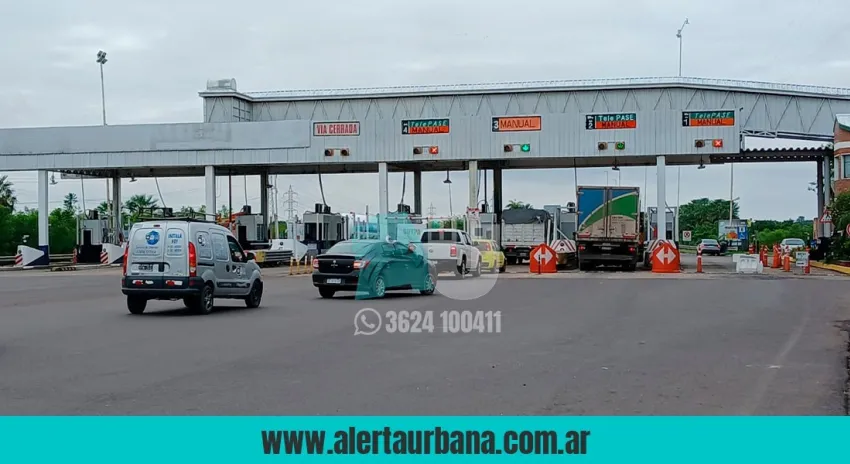 Alerta Urbana se trasladó hasta la cabina ubicada en el acceso al puente Chaco-Corrientes, donde los trabajadores continuaban con el paro de barreras levantadas por lo que los automovilistas no abonan el pago por transitar por allí.