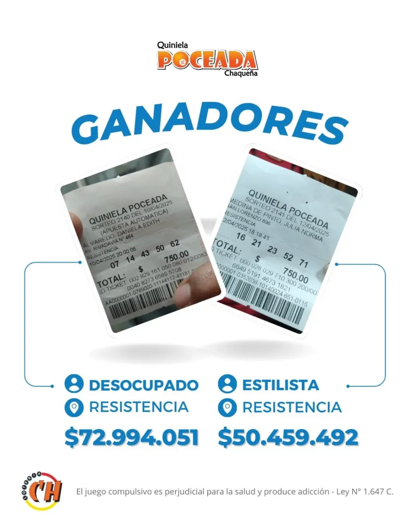 La suerte sonrió a dos humildes trabajadores de la capital chaqueña, quienes se alzaron con los premios mayores de la Poceada Chaqueña en la última semana.