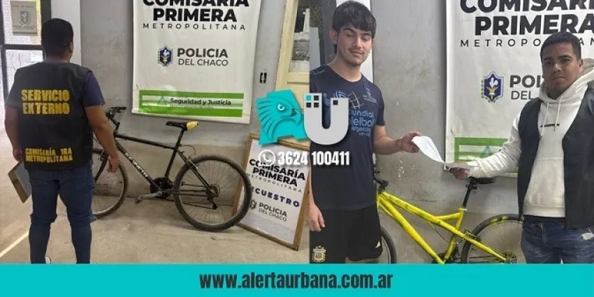 Personal policial de la Comisaría Primera de Resistencia logró recuperar dos bicicletas que habían sido sustraídas durante la mañana de este martes del sector de garaje de un edificio de departamentos de Rodríguez Peña 1.165.