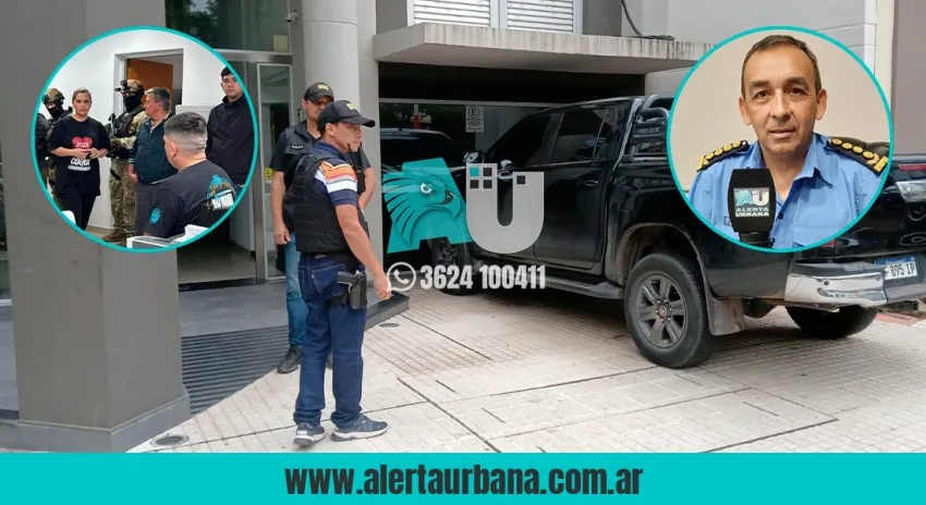 Además del allanamiento en avenida Sarmiento 185, el jefe policial señaló que hay "dos allanamientos más para realizar en la zona comercial céntrica de Resistencia, uno por calle Liniers y el otro por calle Hipólito Irigoyen".