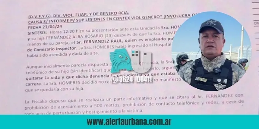 El pasado 23 de abril, la señora Pabla Sabina Homeres (51) se presentó junto a su hija, Alba Rosario Fernández (23), ante la División de Violencia Familiar y de Género de Resistencia para denunciar que sufrió lesiones leves a manos de su pareja, el comisario inspector Raúl Jorge Fernández, actual jefe de la División COM del Departamento 911.
