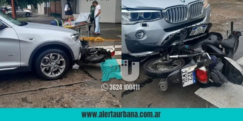 Un accidente de tránsito se produjo en la tarde de este viernes y dejó como saldo un joven motociclista herido, luego de protagonizar una colisión con un vehículo de alta gama, en la esquina de avenida Rivadavia y calle Liniers, de Resistencia.
