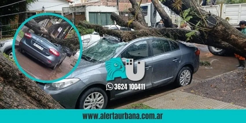 Un árbol aplastó a un vehículo en pleno microcentro de Resistencia