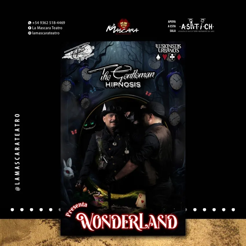 La Máscara Teatro invita al espectáculo de ilusionismo y magia. The Gentleman Hipnosis dará un nuevo espectáculo de hipnosis único en el NEA, denominado "Wonderland". La cita será el sábado 10 de mayo, a las 21 horas.