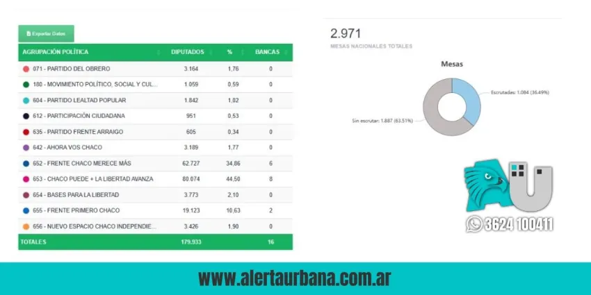 Marcada ventaja de Chaco Puede + La Libertad Avanza tras los primeros resultados oficiales
