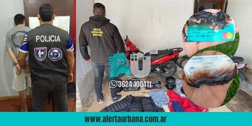 Policías de la División Sustracción Vehicular del Departamento de Investigaciones Complejas Metropolitana logró detener este miércoles a un joven de 20 años acusado de un robo a mano armada ocurrido días atrás en Resistencia. Durante el procedimiento se recuperaron una motocicleta, un teléfono celular y otros objetos personales de las víctimas.
