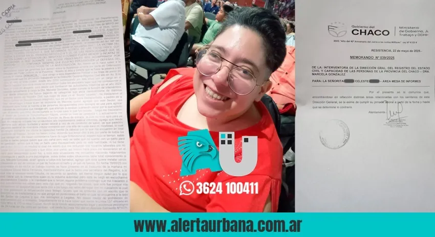 La mujer exhibió en Alerta Urbana tanto la denuncia formal que presentó ante el Departamento de Violencia Familiar y de Género de la Policía del Chaco así como el memorando 039/2025, firmado por la interventora de la Dirección General del Registro Civil, Marcela González.