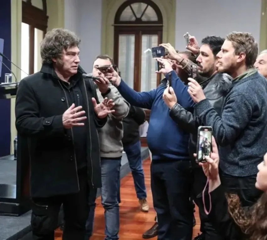 "La idea, desde el comienzo de mi gestión, es que la sala de prensa sea cada vez más profesional", comenzó el portavoz su exposición. "Para mí es importante que se escuche cuando hablan o que salgan bien en cámara. Dentro de eso, creo que tiene que estar la libertad de expresión, la libertad de prensa en todo su esplendor", apuntó Adorni, quien anhela la implementación de un "botón muteador" para que la prensa no se exceda en el uso de la palabra.