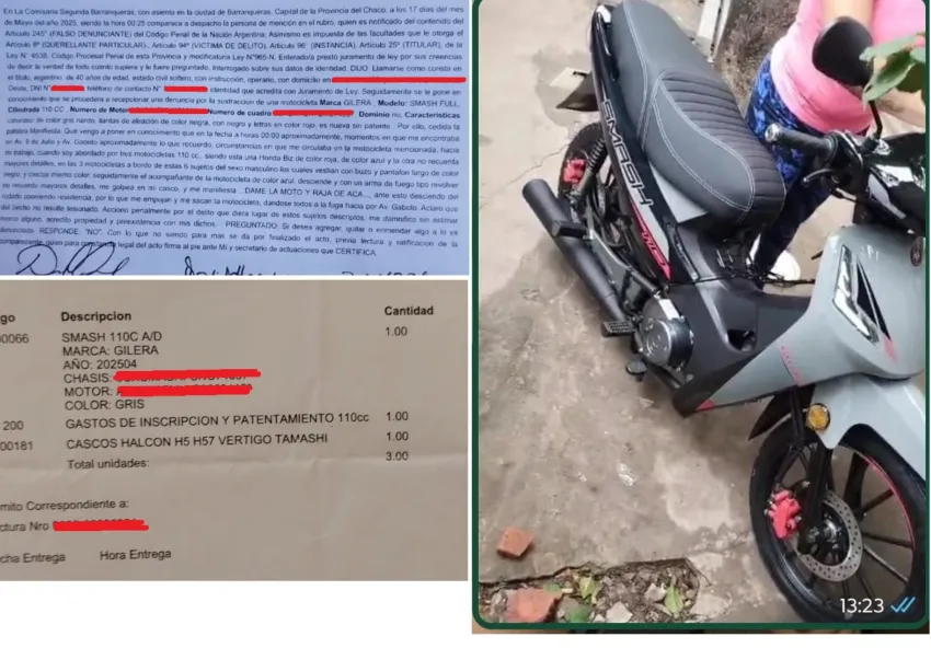 Fue víctima de un robo piraña en Barranqueras y ahora pide ayuda para recuperar su moto