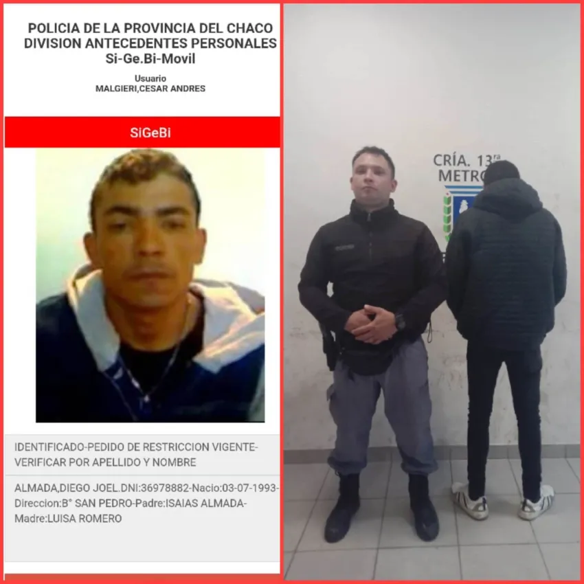 Agentes de la Comisaría Decimotercera de Resistencia º detuvieron en la madrugada de este martes a Diego Joel Almada (31), oriundo de Pampa del Indio y buscado por robo agravado con uso de armas.