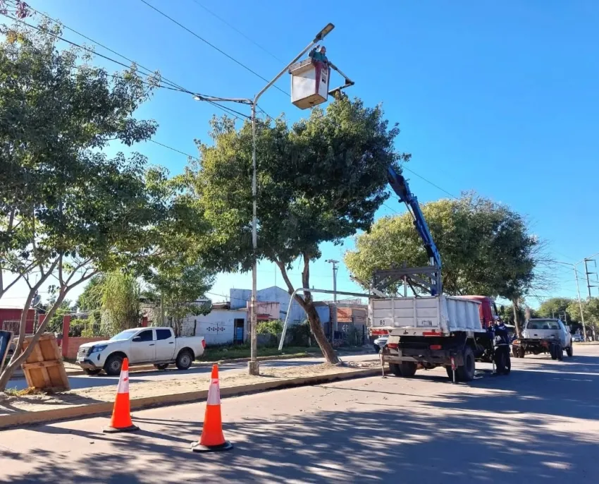 El Municipio realizó este lunes el recambio de luminarias de tecnología LED y reparación de equipos en la avenida 25 de Mayo.