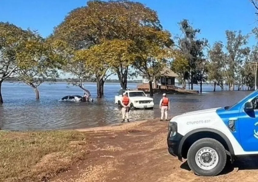 Mientras que el auto quedó varado en un crecido lecho en la zona conocida como "El Honguito", cerca del destacamento de Prefectura.