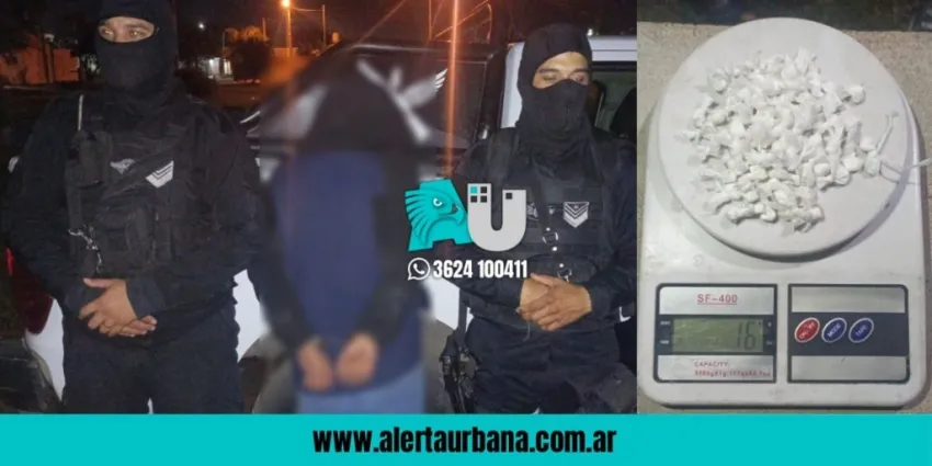 Una vez controlada la situación y frente a testigos, se identificó al joven. Al realizarle un palpado de seguridad, los agentes hallaron en el bolsillo de su pantalón 70 envoltorios pequeños con una sustancia blanquecina, una balanza electrónica marca DINAX y la suma de $33.320 en efectivo.