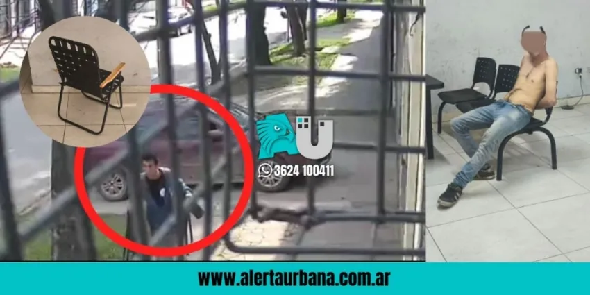 Además de las prendas de vestir que se vieron en la grabación de una cámara de seguridad, el individuo tenía en su poder una silleta tipo reposera negra con respaldo de madera, elemento que coincide con lo denunciado como sustraído.