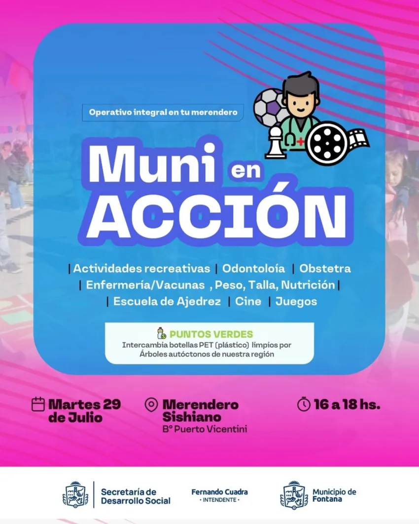 Este martes 29 de julio, la Municipalidad de Fontana llevará adelante un nuevo operativo integral en el merendero Sishiano, ubicado en el barrio Puerto Vicentini. La jornada tiene como objetivo acercar servicios municipales y asesoramiento a los vecinos de la zona.