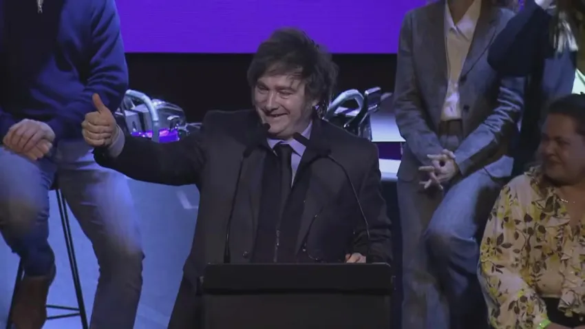 Durante el evento, Milei presentó a los 20 primeros candidatos a diputados por la provincia de Buenos Aires, entre ellos Sebastián Pareja, quien pidió "llenar las urnas de votos violetas".