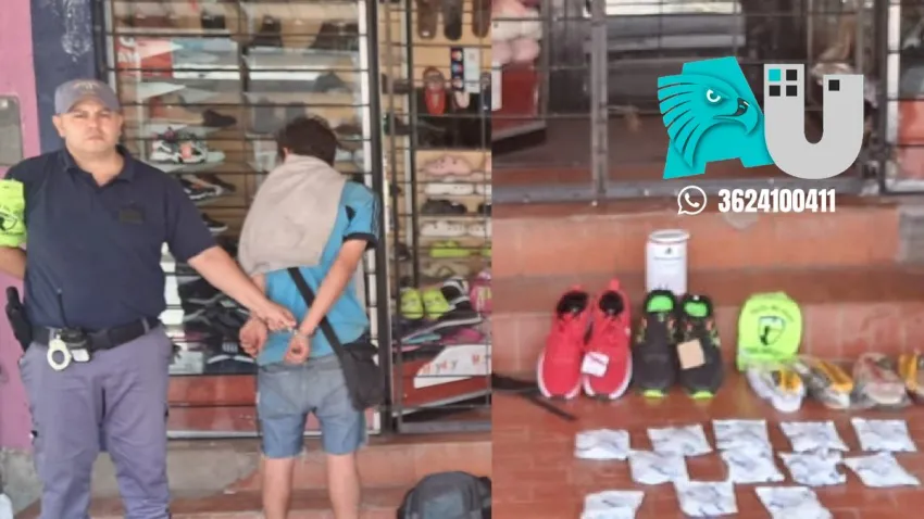 La Policía del Chaco detuvo en flagrancia a un hombre en situación de calle que robó mercadería de una feria de ropas ubicada en la calle Santiago del Estero. El sujeto sustrajo zapatillas, alpargatas, leche en polvo y sueros, aprovechando una vidriera dañada del local comercial.