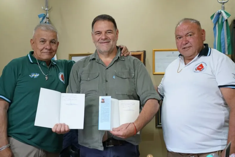 El intendente Rafael Carrara recibió hoy en su despacho a dos excombatientes de Malvinas: Francy Cabrera, oriundo de Corzuela, y Ricardo Vélez, proveniente de la provincia de Córdoba.