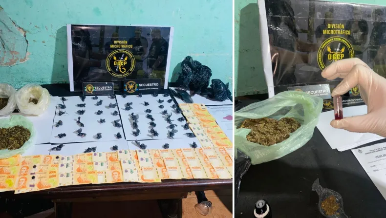 Las pruebas de campo confirmaron que se trataba de marihuana, con un peso total de 250 gramos. También se incautaron recortes de polietileno utilizados para el fraccionamiento y la suma de $53.000 en efectivo.