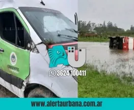 San Luis del Palmar: Una ambulancia volcó después de que el conductor intentó esquivar a una moto