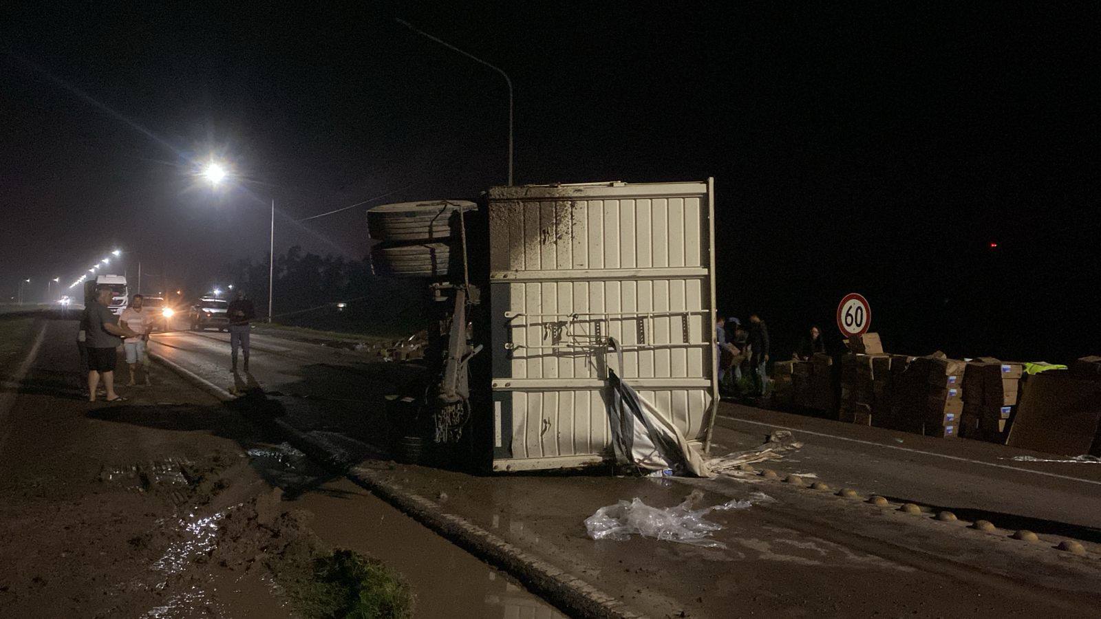 Un camión que transportaba postres lácteos volcó esta madrugada en la ruta 16, a la altura del kilómetro 153, en inmediaciones a Quitilipi.