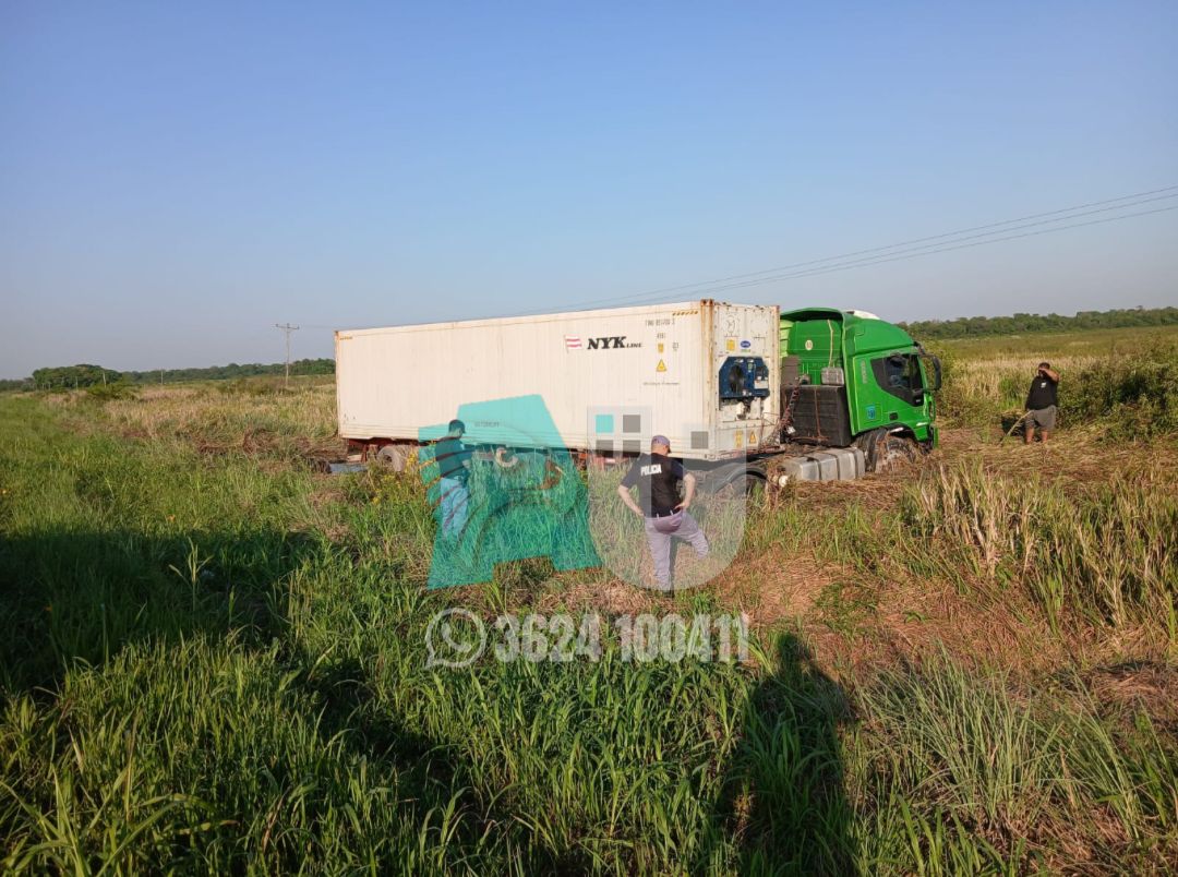 Un camión con destino a Paraguay, proveniente de Buenos Aires, despistó y quedó varado sobre la calzada de la Ruta Nacional N° 11 a la altura del kilómetro 1098, sin registrarse heridos.