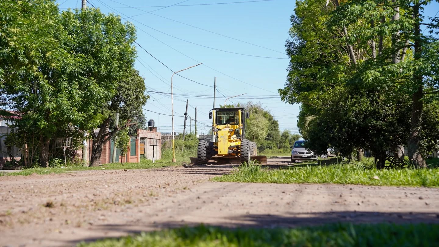 El trabajo incluye perfilado de calles para mejorar la nivelación y asegurar una mejor circulación tanto para vehículos como para peatones.