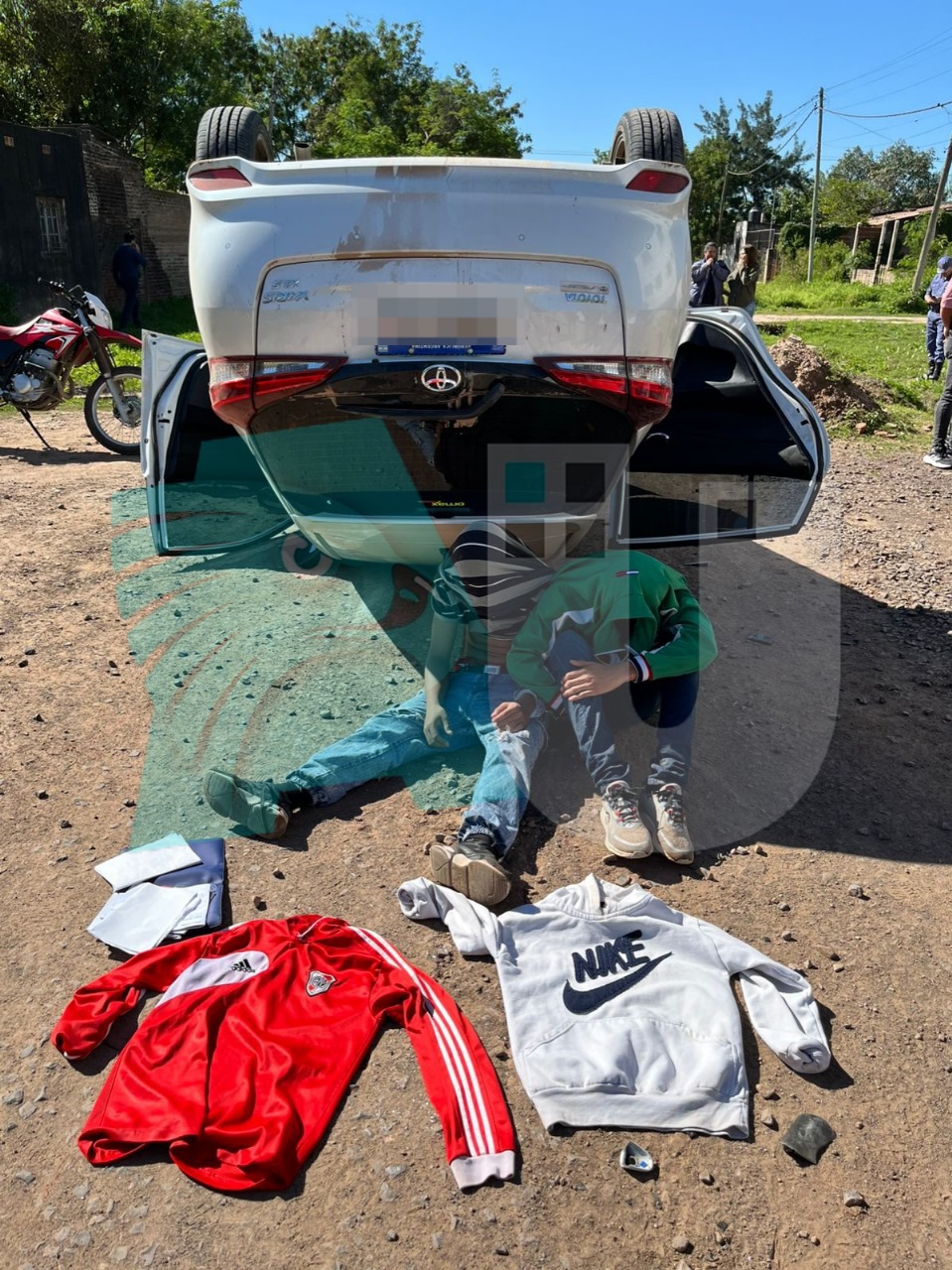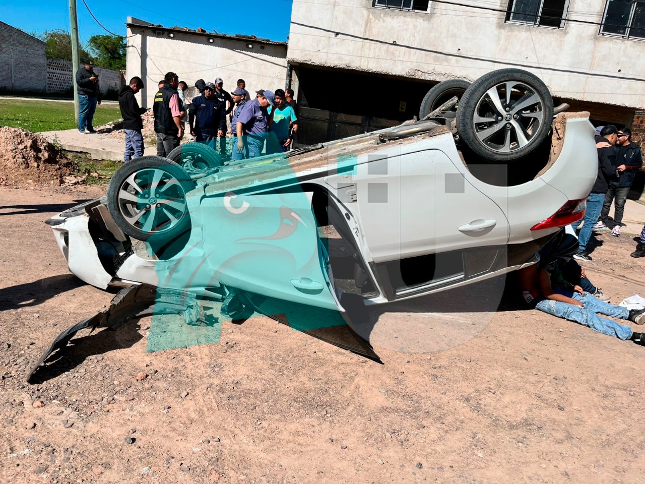 Un Toyota Yaris blanco, robado en la madrugada del jueves de la calle Arturo Frondizi al 1100, fue recuperado tras una persecución que finalizó con el vehículo volcado en la intersección de pasaje Chaco y San Salvador, en Villa Facundo.