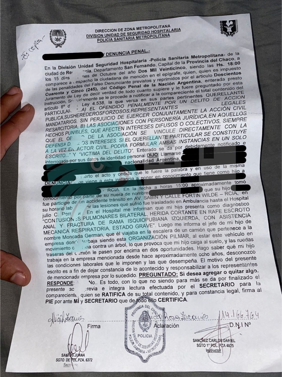 La denuncia presentada por la madre tiene como objetivo dejar constancia de lo ocurrido y responsabilizar legalmente a los representantes de la empresa por el grave estado de su hijo. Al radicar la denuncia el 15 de octubre de 2025, Zacarías fue notificada de sus derechos como víctima del delito, incluyendo la posibilidad de ejercer la acción civil resarcitoria. El caso pone en foco las condiciones laborales y de seguridad en las que se desempeñan los trabajadores de la firma, y ahora la Justicia deberá investigar las circunstancias del hecho para determinar las responsabilidades correspondientes.