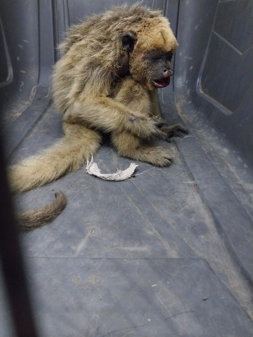 Una mona carayá preñada fue rescatada en la zona del Parque Autódromo de Resistencia con graves quemaduras, presumiblemente causadas por contacto con un tendido eléctrico.