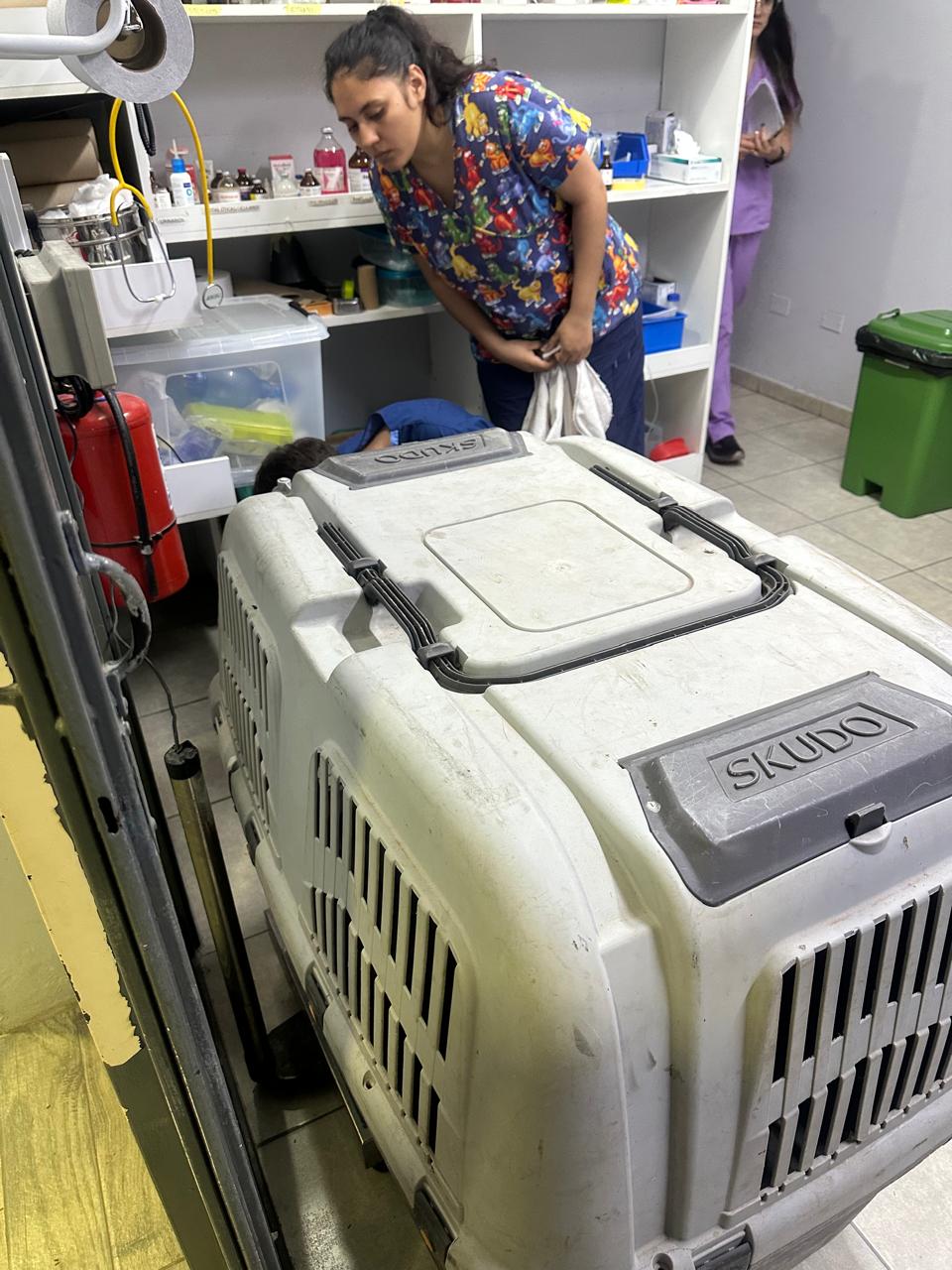 Posteriormente, la mona carayá fue trasladada en un móvil policial a una veterinaria asociada a la Fundación Carayá Róga. Allí fue recibida por el equipo veterinario para continuar con su observación y tratamiento intensivo debido a la gravedad de sus heridas.