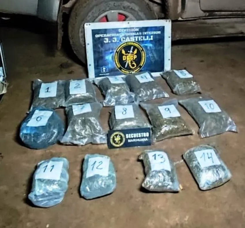12 kilos de marihuana secuestrados y tres detenidos en Castelli