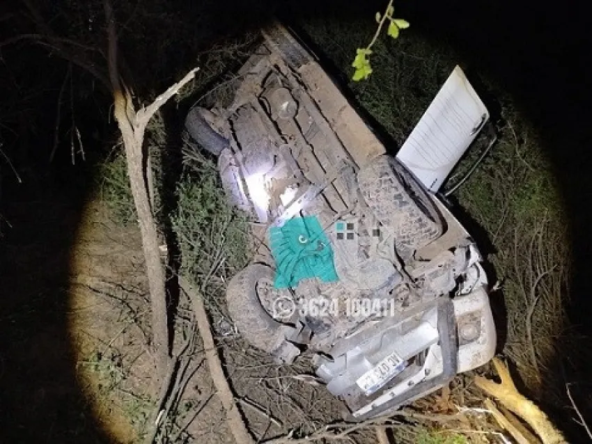 Al llegar a una zona de bajo, uno de los vehículos perdió el control y volcó violentamente, deteniéndose a unos 40 metros dentro del monte. Al arribar al lugar, el personal constató que del interior del rodado salieron dos ocupantes: un hombre identificado como de apellido Quiroz y una mujer de apellido Radovancich, quien presentaba lesiones de gravedad, presumiblemente una fractura en una de sus piernas.