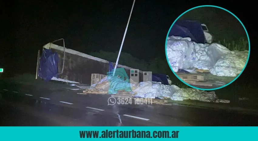 Camión con jabón en polvo volcó en la ruta 11: un herido y demoras en el tránsito