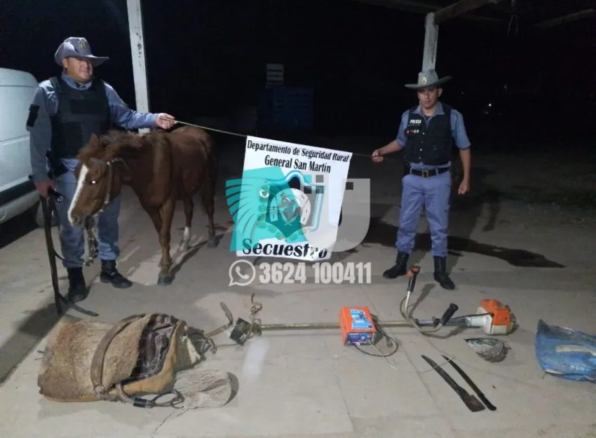 Efectivos de la Policía Rural hallaron en las últimas horas herramientas de trabajo y un caballo sustraídos de una propiedad en Colonia Costa Guaycurú, en la zona de General San Martín, tras detectar movimientos sospechosos en un área despoblada.