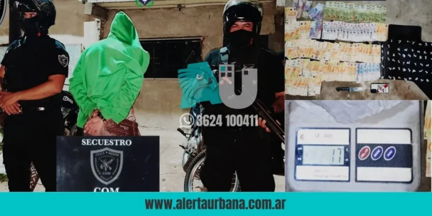 En la oportunidad, al joven le secuestraron 17 gramos de cocaína en 55 envoltorios; $171.500 pesos, un teléfono celular y un cuchillo de 20cm largo.