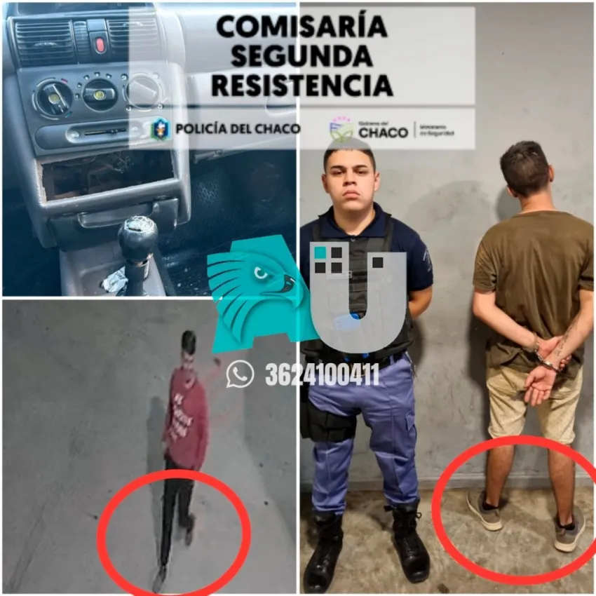 La Policía del Chaco, detuvo a una persona de 32 años por el robo de un estéreo de un auto en la calle Roberto Mora N° 107 en la zona norte de la ciudad de Resistencia.