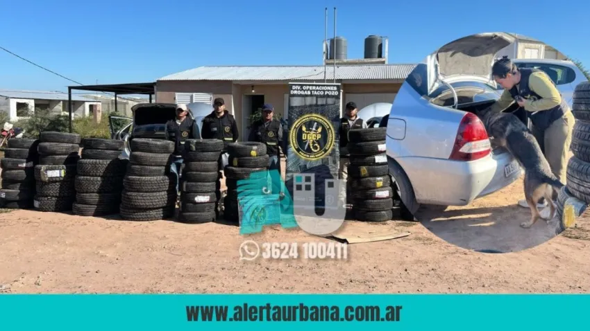 En un operativo desarrollado durante la madrugada de este miércoles, personal de la División Operaciones Drogas de Taco Pozo logró el secuestro de 68 cubiertas de contrabando que eran transportadas en dos automóviles en inmediaciones de Nicolás Avellaneda y Juan Domingo Perón, en la localidad de Taco Pozo.