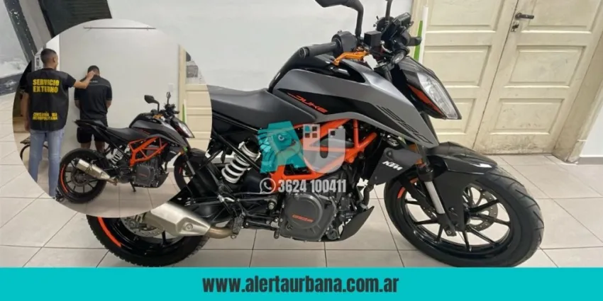 En las primeras horas de la madrugada de este sábado, personal de la Comisaría 1ª de Resistencia secuestró una moto marca KTM Duke 250 cilindradas en la intersección de la Avenida 9 de Julio y calle 9/10. El vehículo, que era conducido por un hombre, presentaba signos de alteración, ya que el número de identificación del motor estaba borrado.