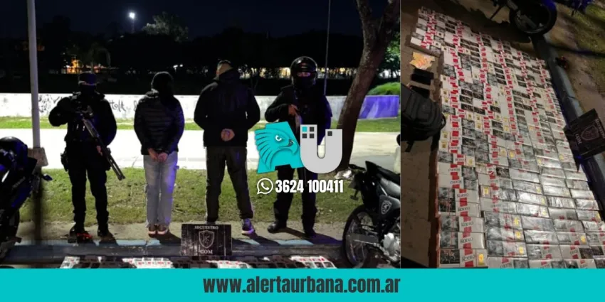 Durante un operativo de prevención, la policía interceptó anoche a una pareja en la avenida Vélez Sarsfield de Resistencia al encontrarles tres bolsos negros con 150 gruesas de cigarrillo sin documentación que acreditara su procedencia.