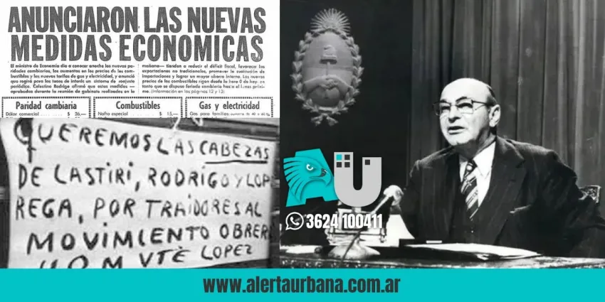 El entonces ministro de Economía argentino, Celestino Rodrigo, dispuso un ajuste que duplicó los precios, produjo la disminución del poder de compra de los argentinos y el desabastecimiento de productos de primera necesidad.
