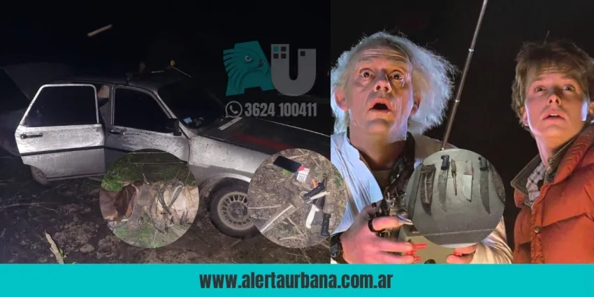 Anoche, en plena oscuridad y con un auto que parecía salido de la icónica saga de películas "Volver al Futuro", efectivos rurales en La Leonesa lograron sorprender a dos hombres mientras realizaban una faena clandestina en un campo privado del paraje Las Rosas.