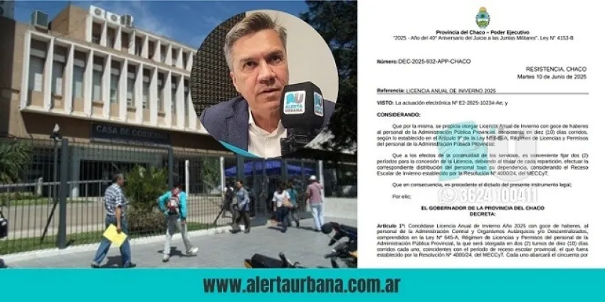 El gobernador de la provincia del Chaco, Leandro Zdero, firmó un decreto mediante el cual se establece la licencia anual de invierno 2025 con goce de haberes para el personal de la Administración Pública Provincial, tanto central como de organismos autárquicos y descentralizados, en el marco de lo dispuesto por la Ley N° 645-A de Régimen de Licencias y Permisos.