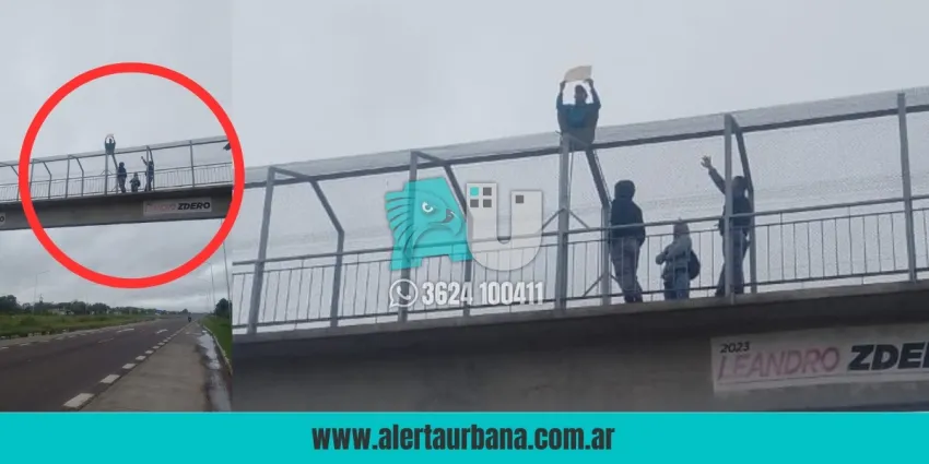 Efectivos policiales intervinieron esta mañana en el puente peatonal sobre la autovía de la ruta 16, precisamente en el kilómetro 28, ante la presencia de un hombre que, con un cartel de cartón, amenazaba con lanzarse al vacío.