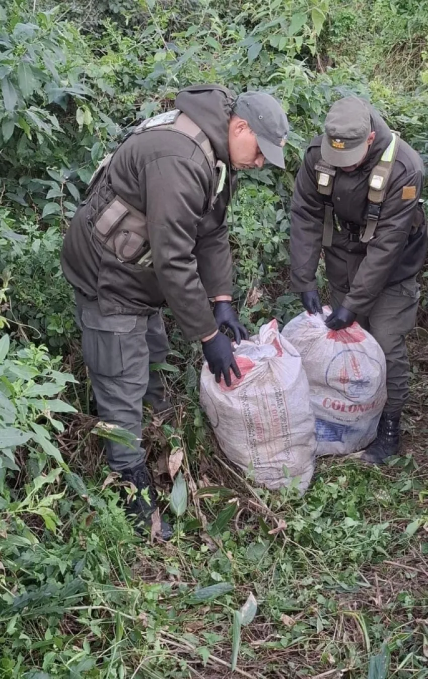 Ante tal situación, personal de la Fuerza, se acercó al lugar hallando al costado del vehículo entre la maleza dos bolsas tipo arpilleras, las cuales aparentemente habían sido arrojadas por el conductor del rodado ante la presencia de los gendarmes.