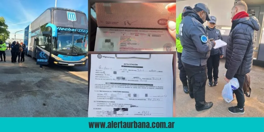 Durante la inspección de un colectivo de larga distancia con 21 pasajeros a bordo, se demoró a un ciudadano de nacionalidad rusa identificado como Zakharov Taras, de 29 años, con pasaporte N° 76599001. Según los registros, Taras había ingresado al país en 2022 en calidad de residente transitorio turista y había solicitado una prórroga transitoria, pero ambas autorizaciones se encontraban vencidas desde el año 2023. Su domicilio registrado es en la Ciudad Autónoma de Buenos Aires.