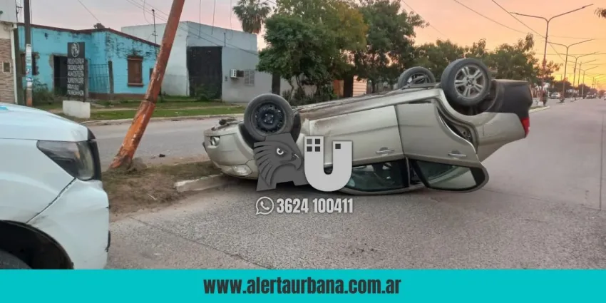Un Chevrolet Aveo color champagne protagonizó un violento accidente esta mañana en la intersección de avenida Urquiza y calle Fortín Aguilar, en la zona Sur de Resistencia.