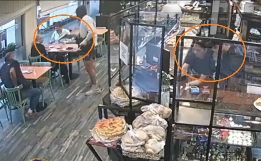 En simultáneo, el otro ladrón comienza a recorrer las mesas. En las imágenes se ve que son tres los clientes que están sentados: un hombre y una pareja.