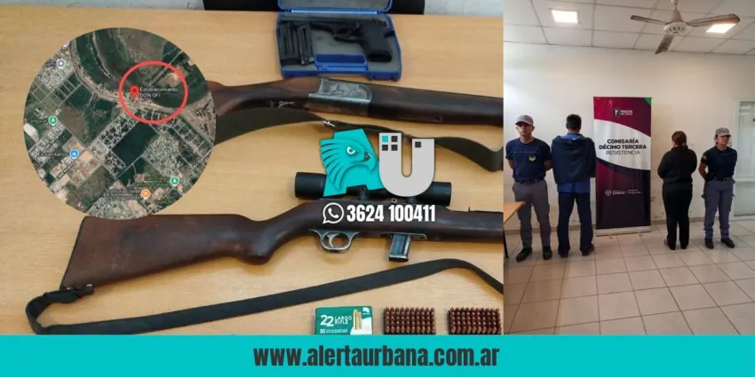Durante el allanamiento -autorizado por el Juzgado de Garantías 2 y supervisado por el ayudante fiscal Joel Abregú- se secuestraron un rifle calibre 22 con mira; una pistola Bersa Thunder 22; una escopeta calibre 12/70 de doble caño; y 103 cartuchos de distintos calibres.